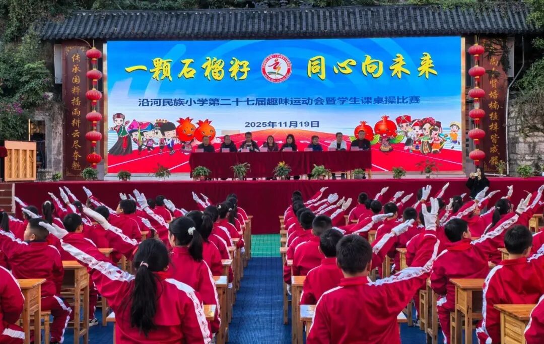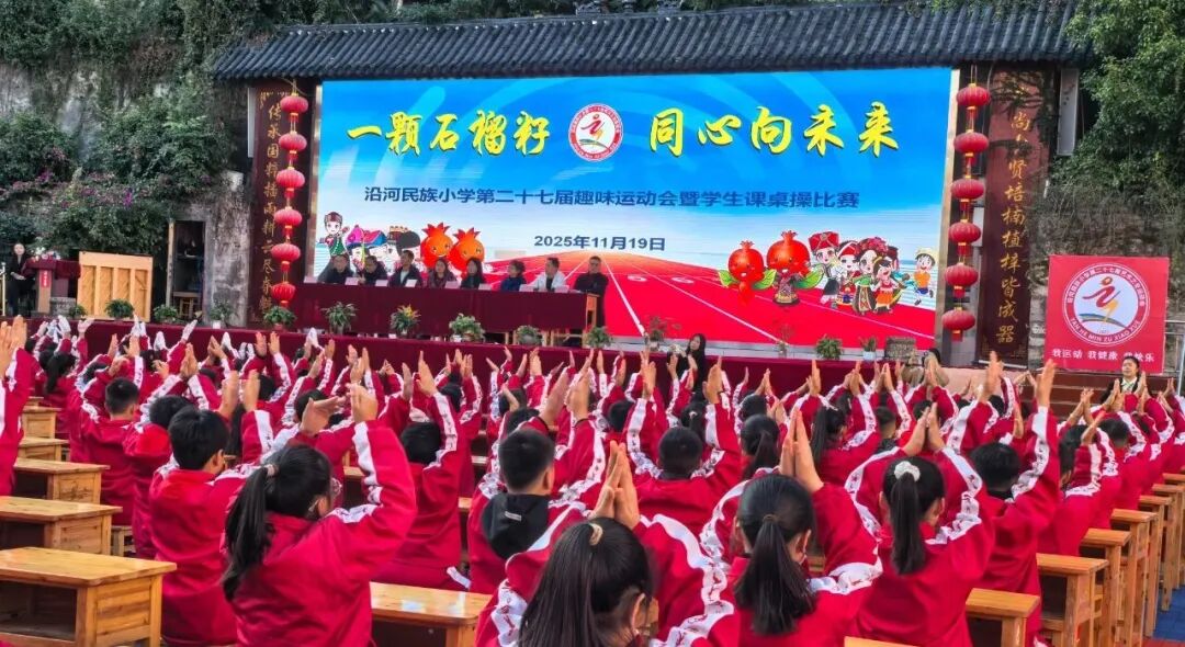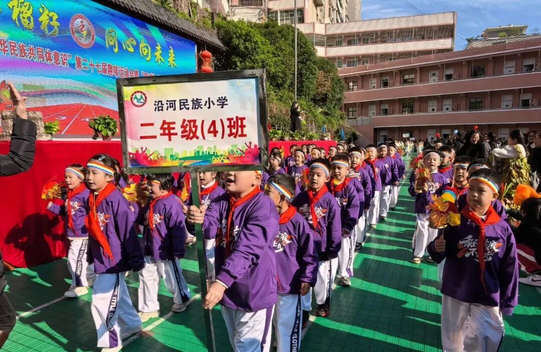 为铸牢中华民族共同体意识,增强学生体质,培养集体荣誉感与爱国主义精神,同时展示“双减”政策下课后服务的丰硕成果。11月19日,沿河民族小学“铸牢中华民族共同体意识”第二十七届趣味运动会暨“双减”课后服务成果展示活动在校园内正式拉开帷幕。