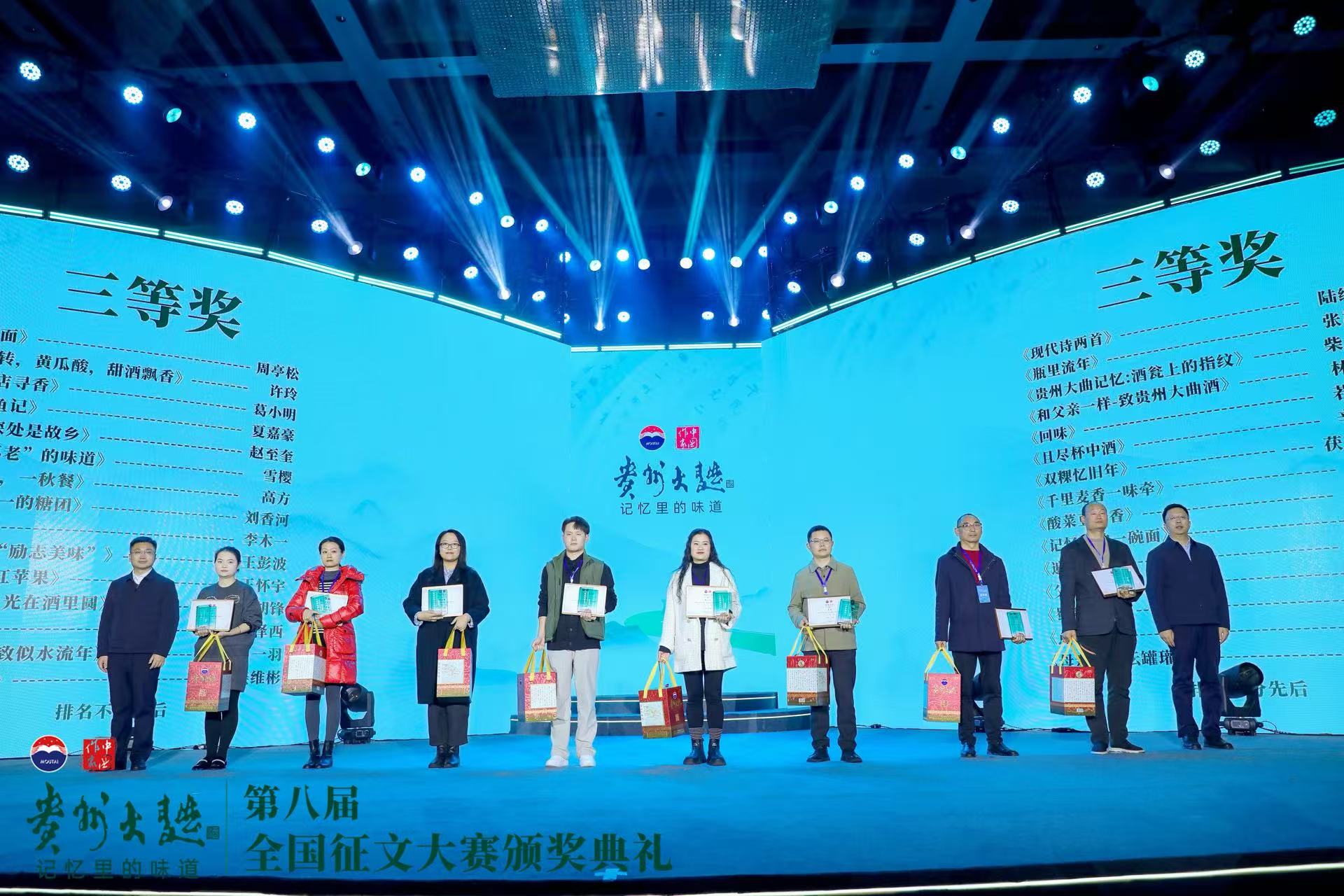 12月2日,第八届“贵州大曲杯·记忆里的味道”全国征文大赛颁奖典礼在贵州仁怀举行,征文内容聚焦童年家宴、故乡酒文化、亲情友情、父辈酿酒传承等,参赛人群涵盖文学爱好者、消费者等,共收到全国7375篇参赛作品,最终评选出特等奖和一二三等奖,共计45人获奖,最高奖项奖金达30000元。