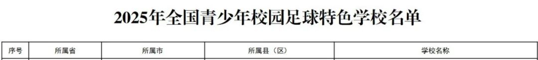 教育部办公厅关于公布2025年全国青少年校园足球特色学校名单的通知
