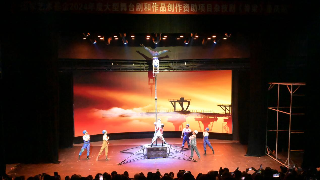 2024年12月中旬,“黔山贵水总是情”——多彩贵州优秀剧目文旅交流巡演项目《脊梁》走进重庆市,在重演金源艺术中心开展试演。该剧以贵州交通建设为题材,通过杂技特有的“惊奇险美”和充满张力的肢体语汇,融合戏剧、舞蹈、魔术、戏曲等艺术形式,讲述了主人公关东方传承父亲“老满”的夙愿,加入工程队开山修路、遇水架桥的故事。