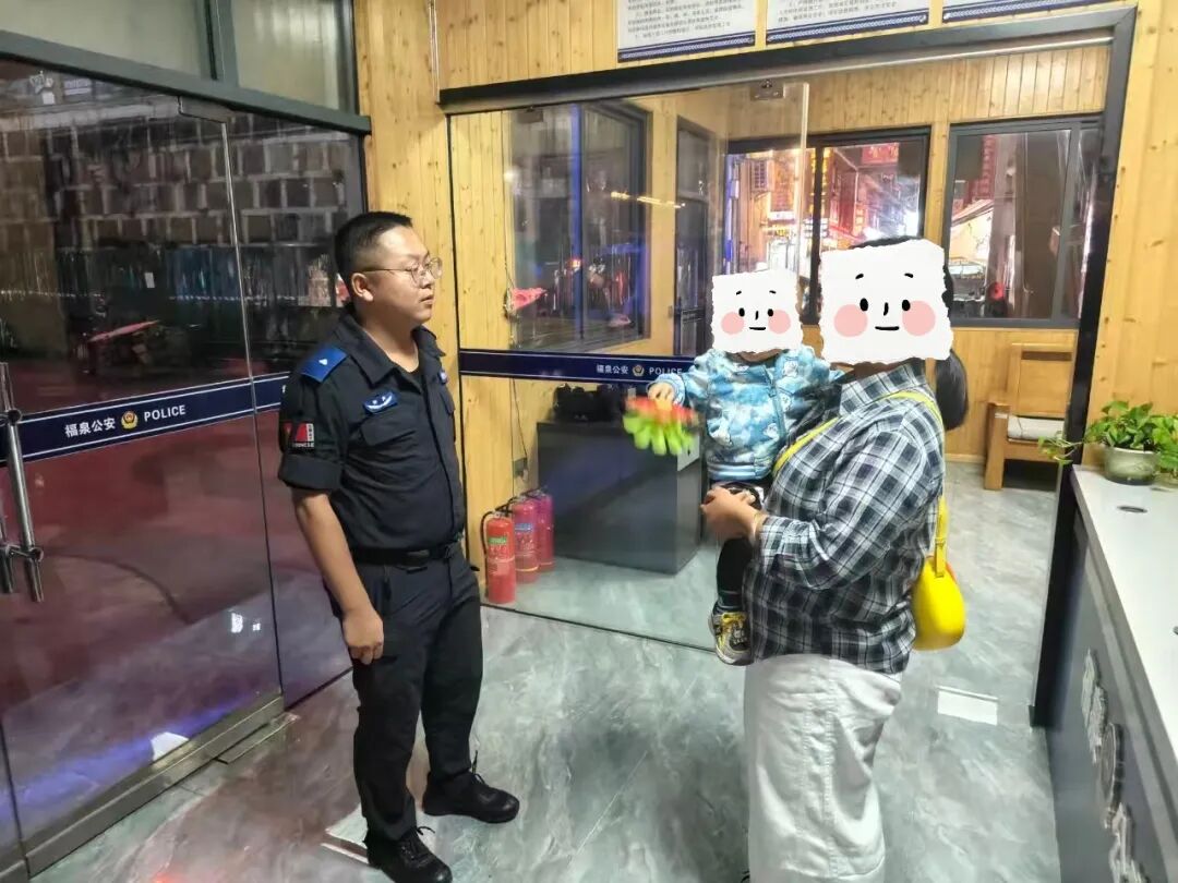 “在附近逛街看到小孩自己在那里,我走过去,他抱着我就不放了,我看周围没人就抱他过来了。”市民李女士抱着一个小男孩急切地说道。正在值班的巡特警大队民警见状,立即接过孩子轻声安抚,抱着他走出警务站绕着广场寻找家人。