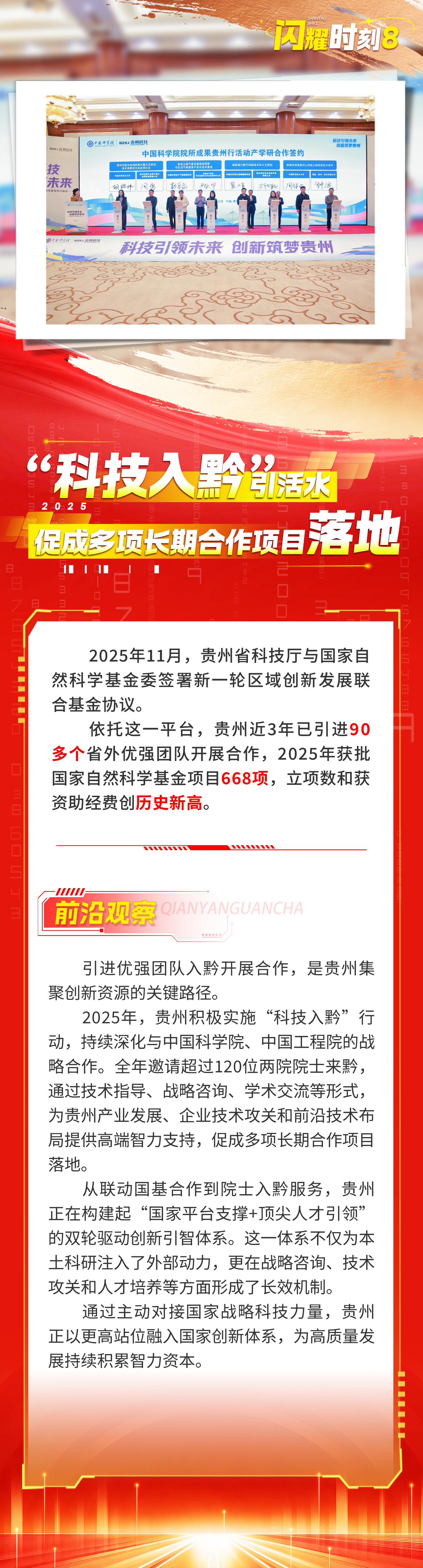 回望2025,贵州科技创新步履铿锵,硕果累累,一项项“硬核”成果闪耀全国乃至全球舞台。 此刻,让我们共同开启【2025·贵州科技闪耀时】,一起回顾这一年的科技热点与高光瞬间,见证属于贵州科技的闪耀时刻!