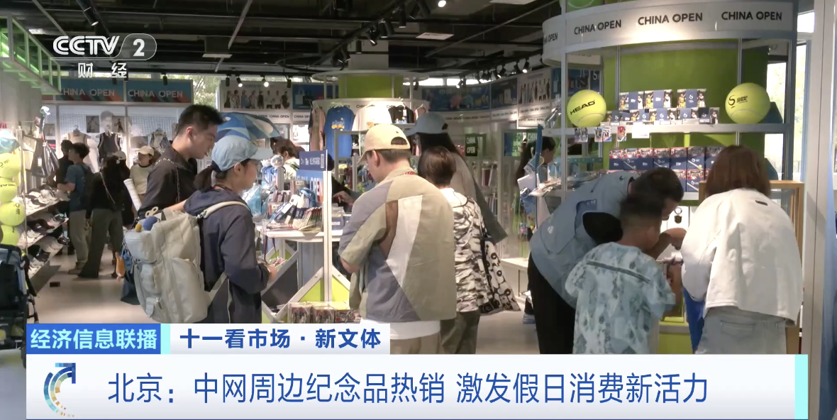 在国家网球中心园区内的中网特许商品门店里,前来选购的消费者排起了长队,衣服、水杯、毛巾等纪念品琳琅满目,价格在几十元到上千元不等,消费者还有机会获得球员的现场签售。