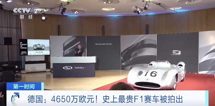 当天,在德国西南部城市斯图加特一家博物馆举行的拍卖会上,一辆1954年款的梅赛德斯-奔驰赛车拍出了4650万欧元(约合3.5亿元人民币)的高价,成为史上最贵的F1赛车。如果加上其他各种税费,买家最终支付的金额将达到5155万欧元(约合3.9亿元人民币)。