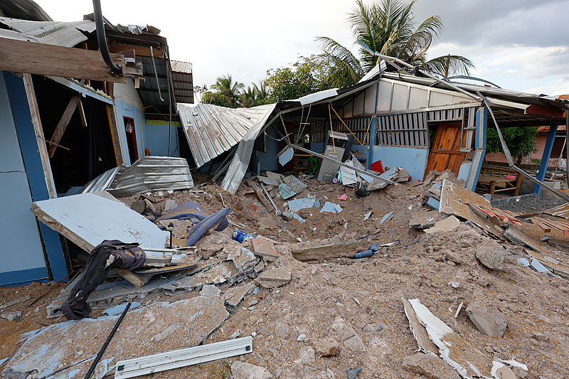 △当地时间12月13日,在冲突中受损的泰国民房。