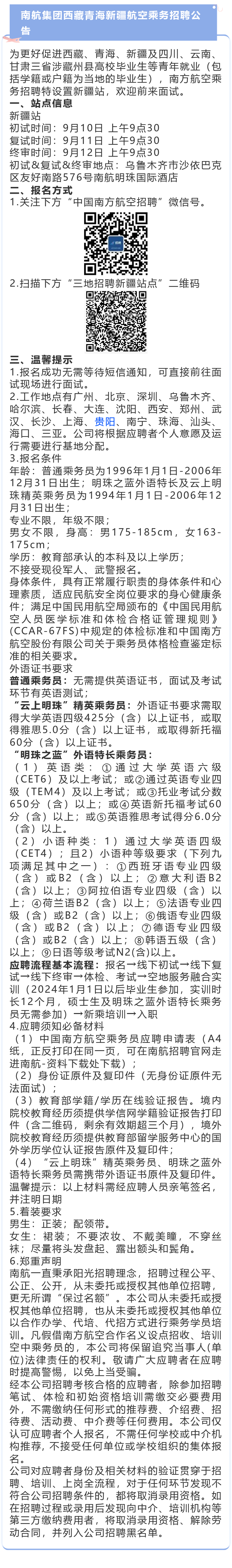 贵阳有岗!中国南⽅航空集团有限公司招聘!正在报名中!