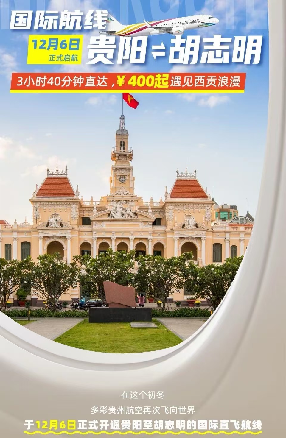 新航线启航 | 12月6日起,贵阳直飞胡志明!探索“东方巴黎”的便捷之选