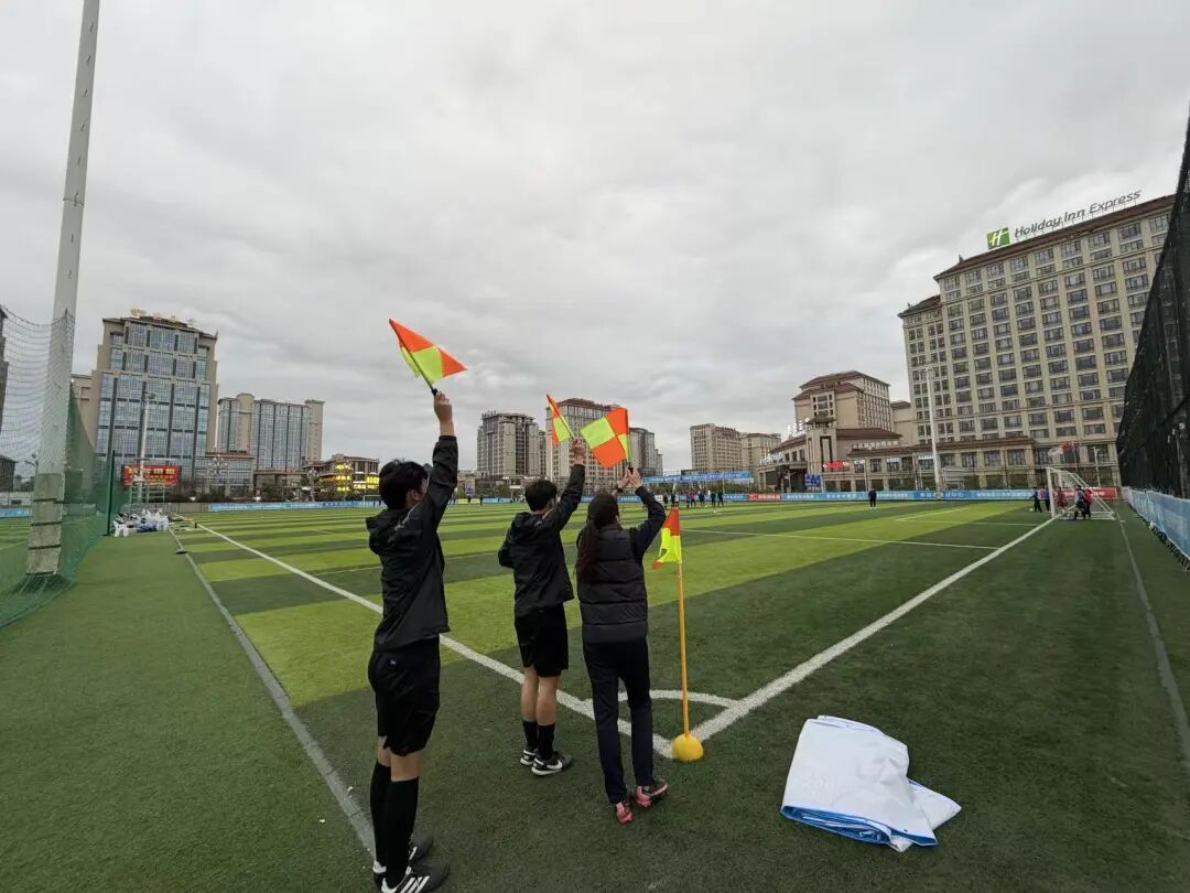 讲师现场统一青训赛事判罚尺度,开展助理裁判旗语、临场执裁协同等专项训练,一对一规范动作细节,确保学员熟练掌握核心技能。