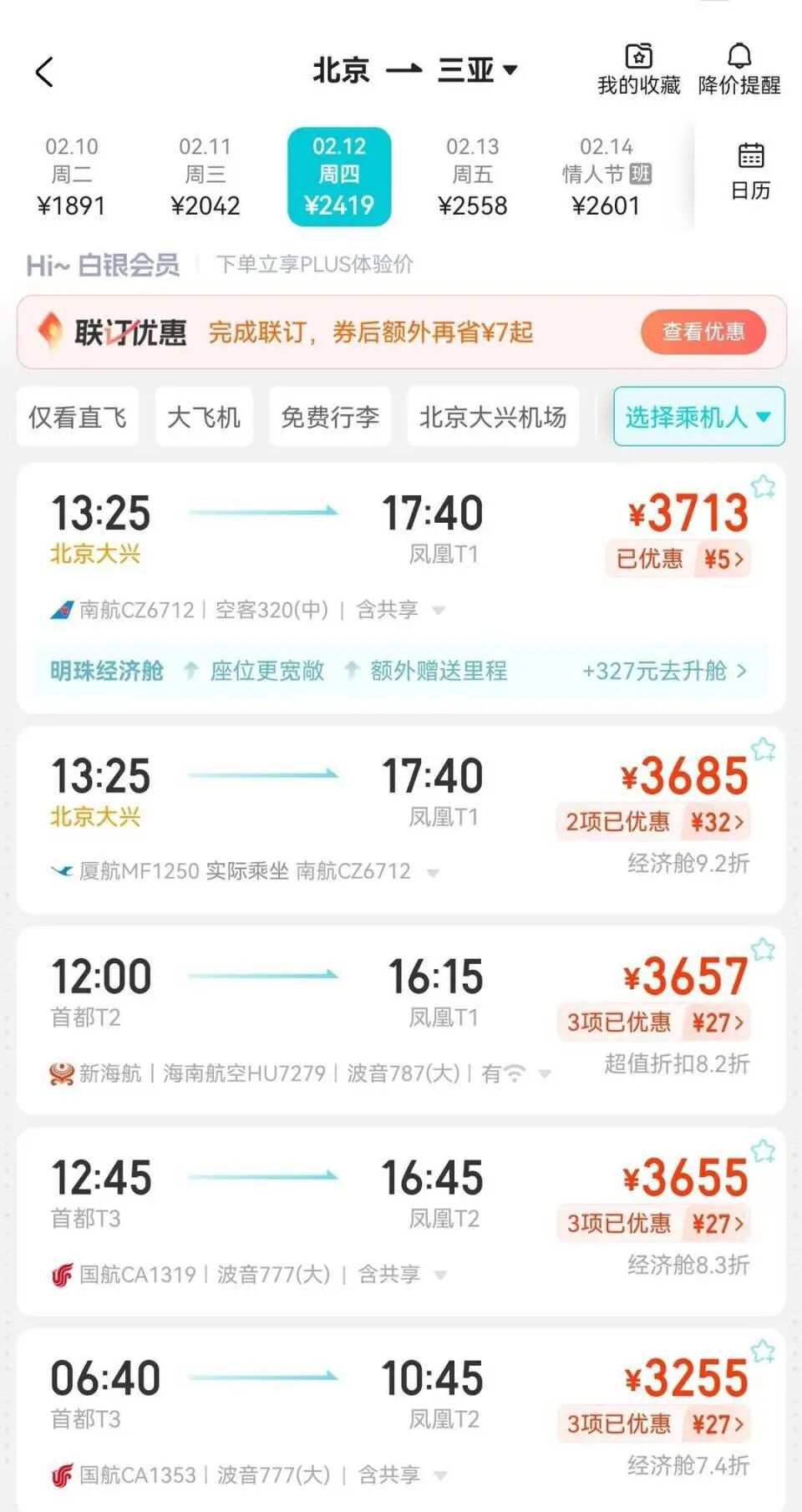 多地赴三亚机票上涨,部分时段突破4000元,网友:还没到春节就“飞不起了”