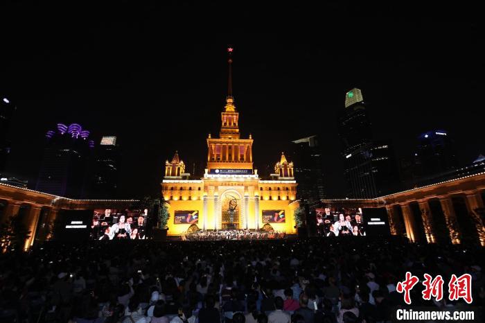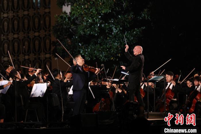 10月14日晚,克里斯托夫·艾森巴赫与中国上海国际艺术节节日乐团大型户外交响音乐会在上海展览中心上演。 陈禹州 摄