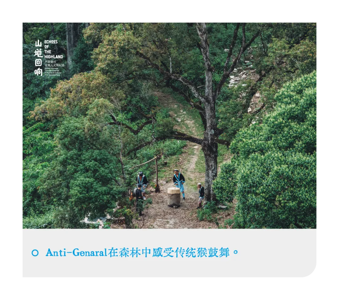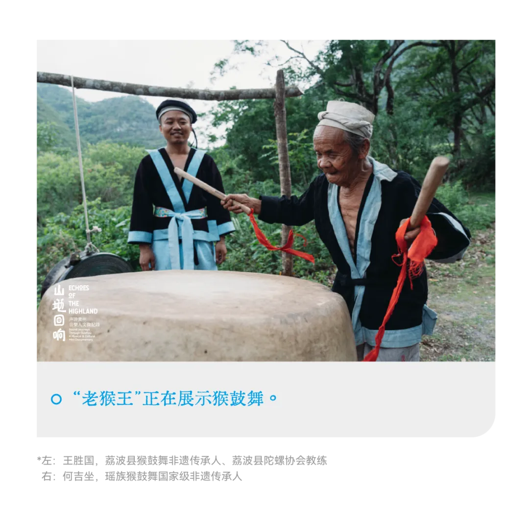 寻访从荔波懂蒙古寨开始。“懂蒙”在瑶语中意为“远古、神秘与美好”,广场上,年轻传承人击打着猴鼓,鼓点急促,舞者腾跃旋转。Anti-General并未久留,他穿过热闹,沿着小径向森林深处走去,去拜访传说中的“老猴王”,瑶族猴鼓舞国家级非遗传承人何吉坐。