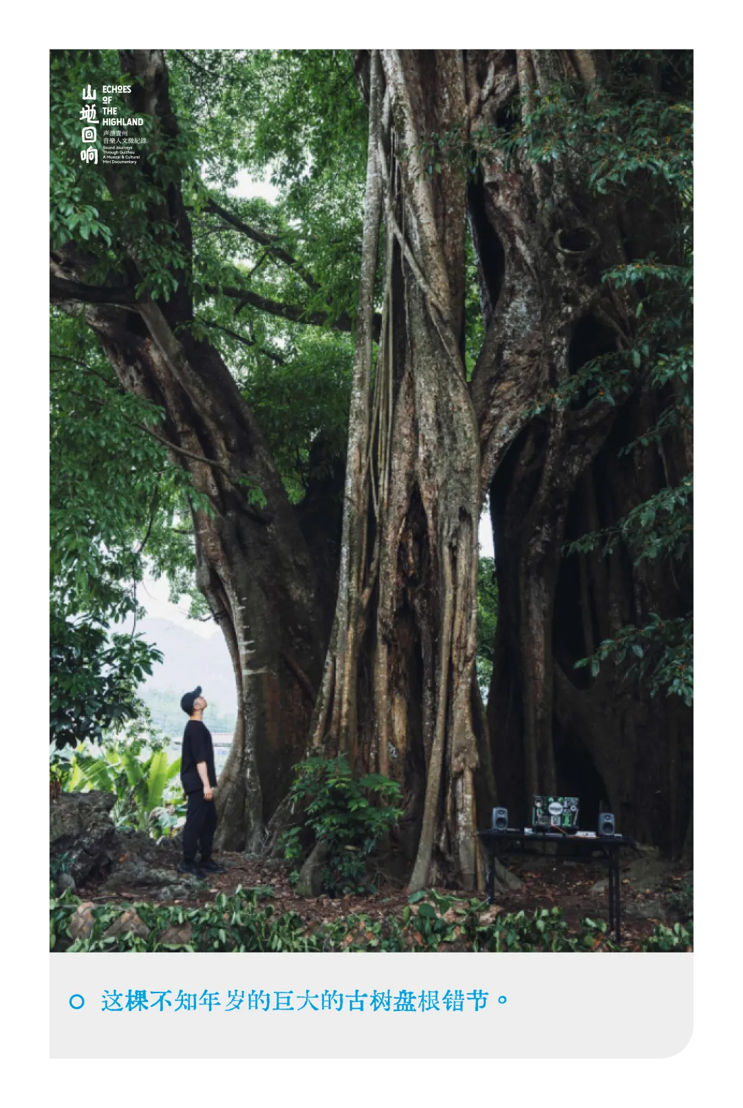 采风途中,一棵数百年树龄的古树拦在面前。树干沟壑纵横,时光凿出大小孔洞。Anti-General在树下支开便携桌案,摆开设备。当音响中流出老猴王的鼓声,他即兴加入的电子旋律便开始与之交织、对话。