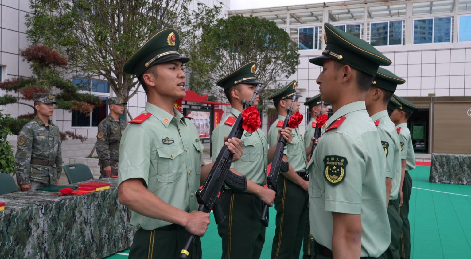 “新兵同志,我已圆满完成任务,730 天,现将武器交接于你,希望你像对待生命一样,对待武器。”授枪仪式上,老兵郑重地将钢枪交到新兵手中,这既是一种精神的传承,也是责任和使命的交接。