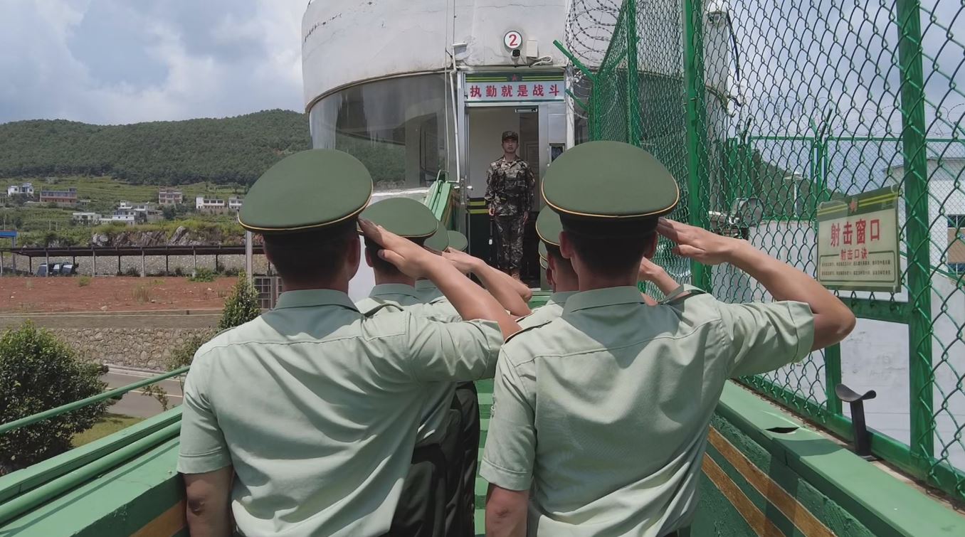 随后,退役士兵再次来到熟悉的巡视道,站立在守卫多年的岗哨前,向坚守多年的哨位敬礼告别。