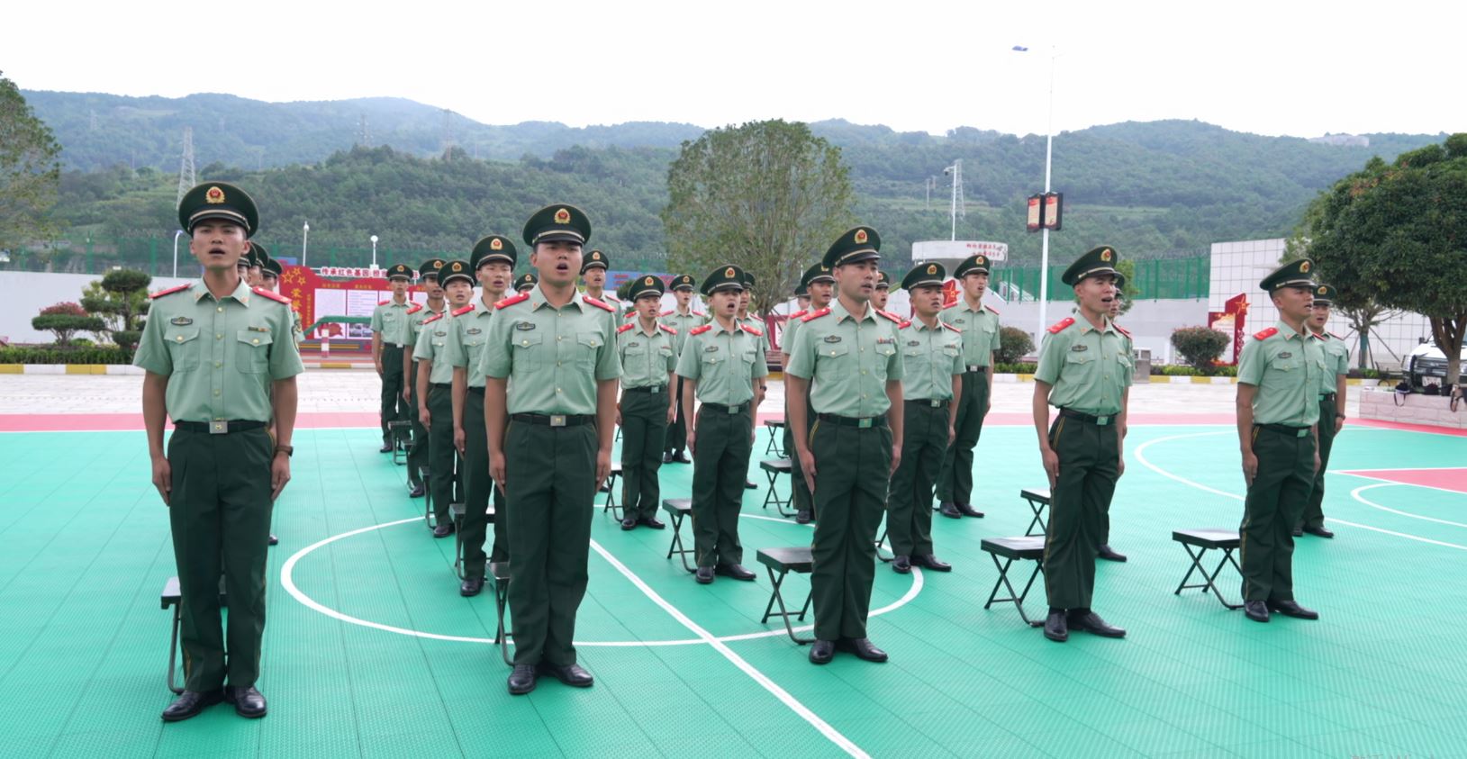 仪式在庄严的中华人民共和国国歌中开始,全体士兵站立奏唱国歌。在中队领导宣读退役命令后,开始举行授枪仪式。