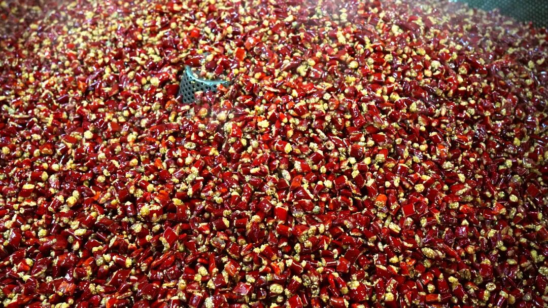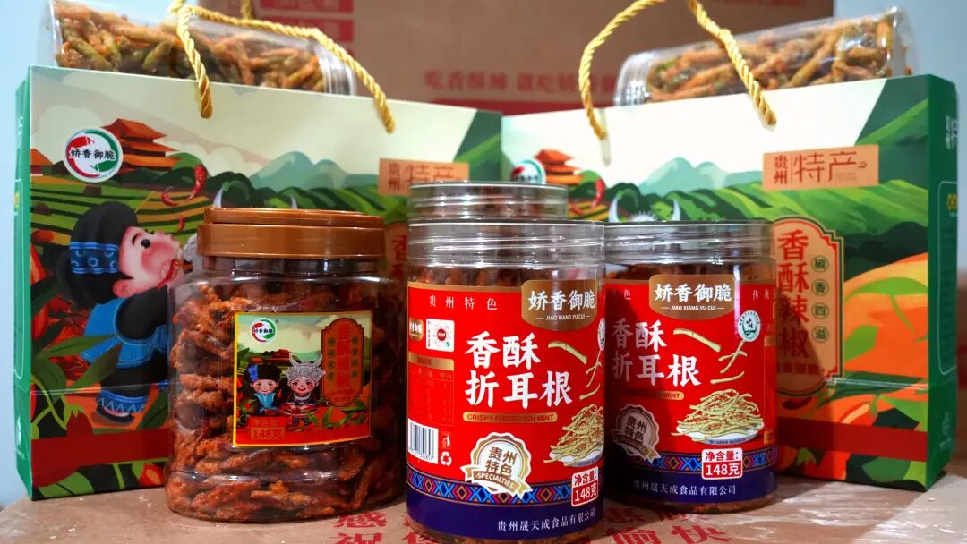 伴随着热油翻滚的“滋滋”声和浓郁的香辣味道,晟天成食品生产的香酥辣椒、香酥折耳根、香酥佛手瓜等“香辣脆”系列贵州特色休闲小零食,正源源不断产出,并打包发往全国各地。
