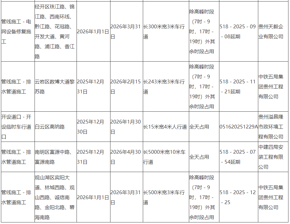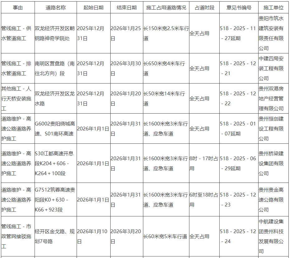 贵阳市南明区营盘路等近期临时占用道路施工提示