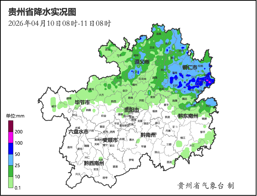 13县域内出现4站大暴雨、109站暴雨,