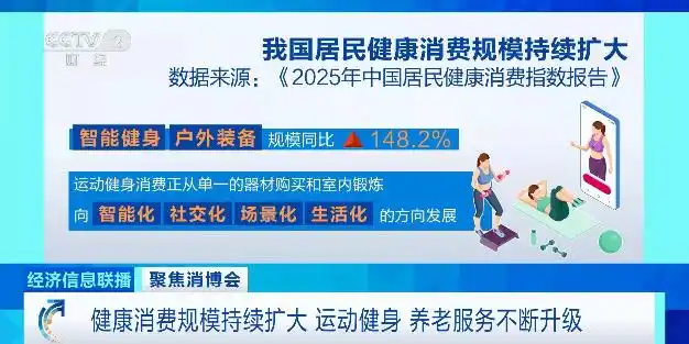 报告显示,2025年,我国居民健康消费规模持续扩大,运动健身类、养老服务类成为占比最高的两大板块,其中,智能健身与户外装备规模同比增长148.2%;运动健身消费正从单一的器材购买和室内锻炼,向“智能化、社交化、场景化、生活化”的方向发展;此外,智慧养老服务产品规模同比增长28.7%,居家照护场景成为实物与服务消费的核心阵地。记者发现,这份报告中的核心观点也在消博会上得到印证。