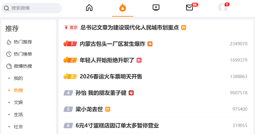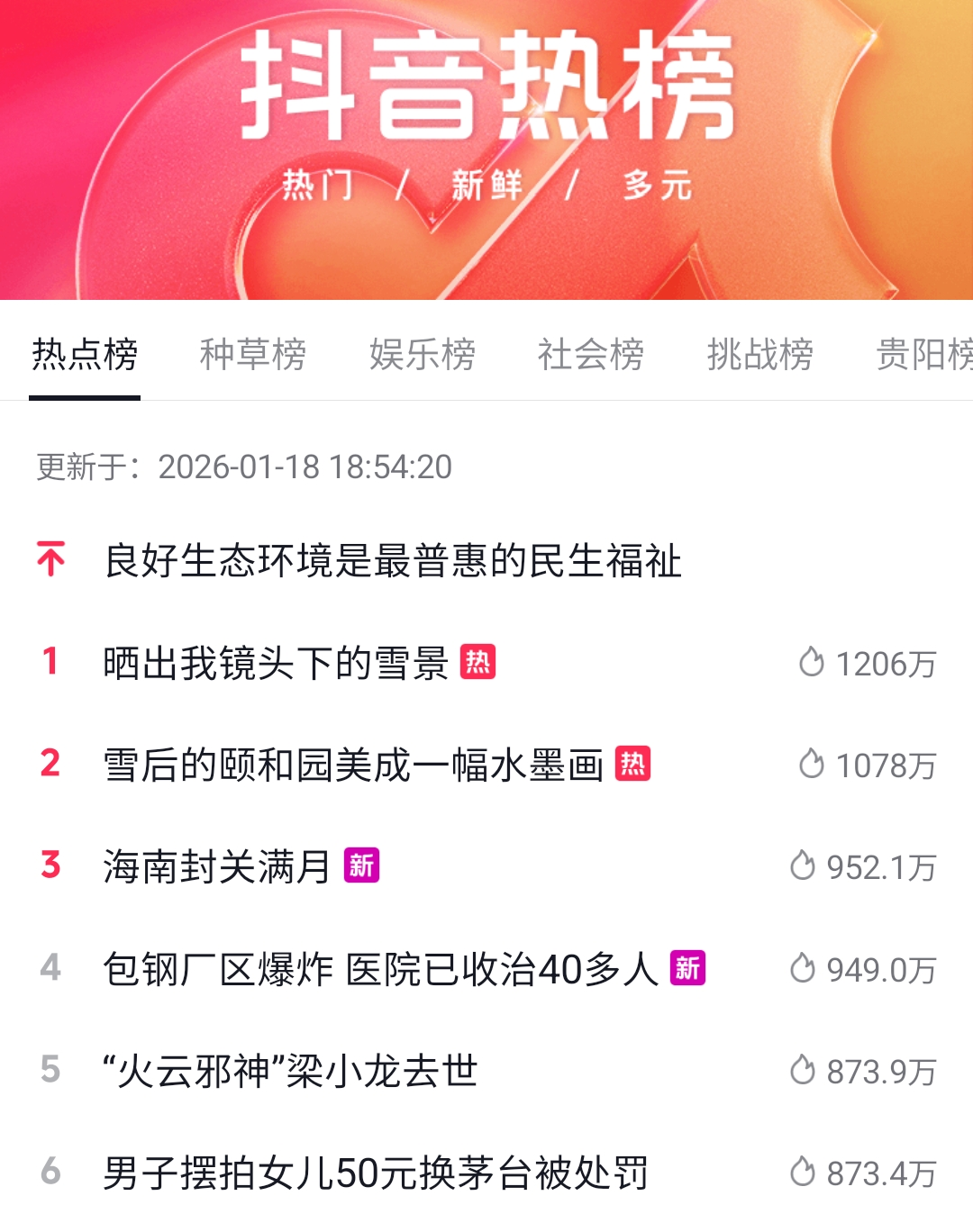 打开动静新闻客户端,刷动静听新闻。社交媒体热点打捞,洞悉社会情绪,最后来看各大热榜,明天再见!