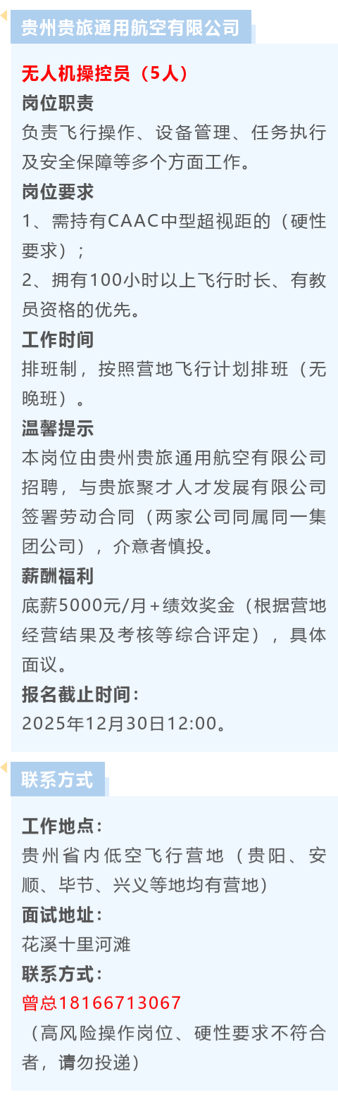 招聘无人机操控员!底薪5000元!