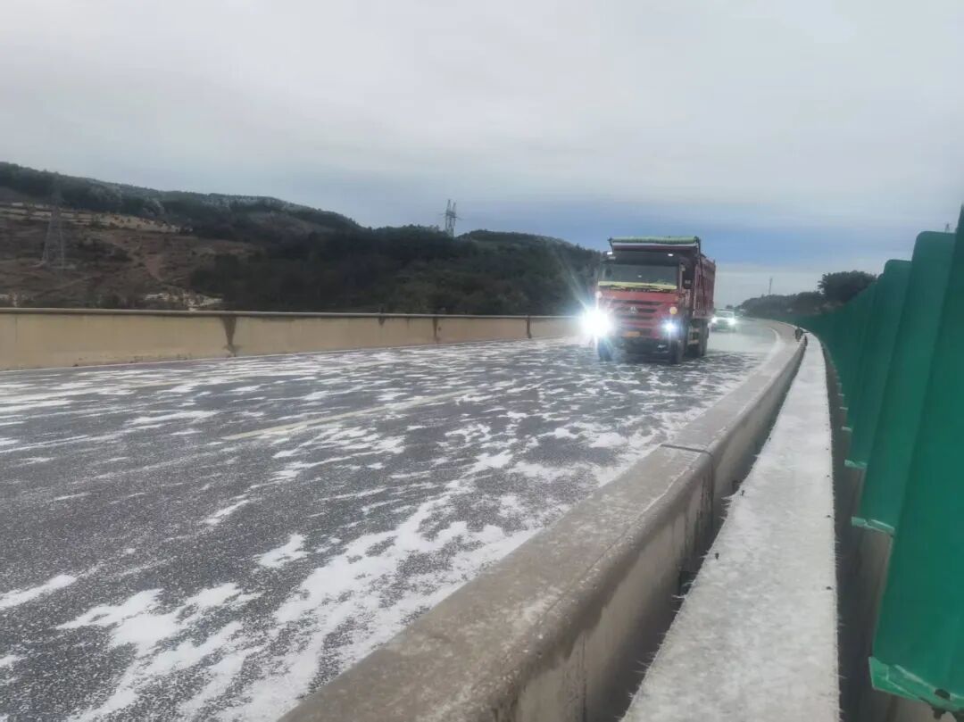18日20时,G7611都香高速六威线、G56杭瑞高速毕都线最低温度降至零下,雨雾交织、路面湿滑、能见度骤降。毕节营运中心协同毕节市气象部门密切追踪气象预警信息,“秀美黔途”突击队第一时间启动抗凝保通应急预案,采用“机械为主、人工为辅、点面结合”的循环作业模式,利用融雪剂撒布机对主线进行预防性融雪撒布,同时加大对桥梁、隧道出入口、急弯陡坡等易凝冻重点路段巡查,确保除雪防滑无死角、全覆盖。