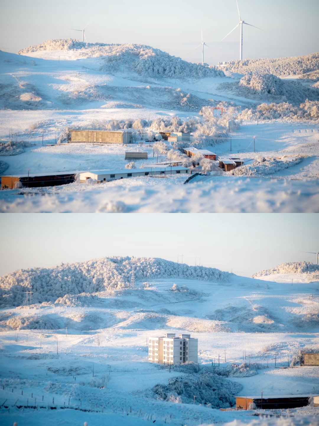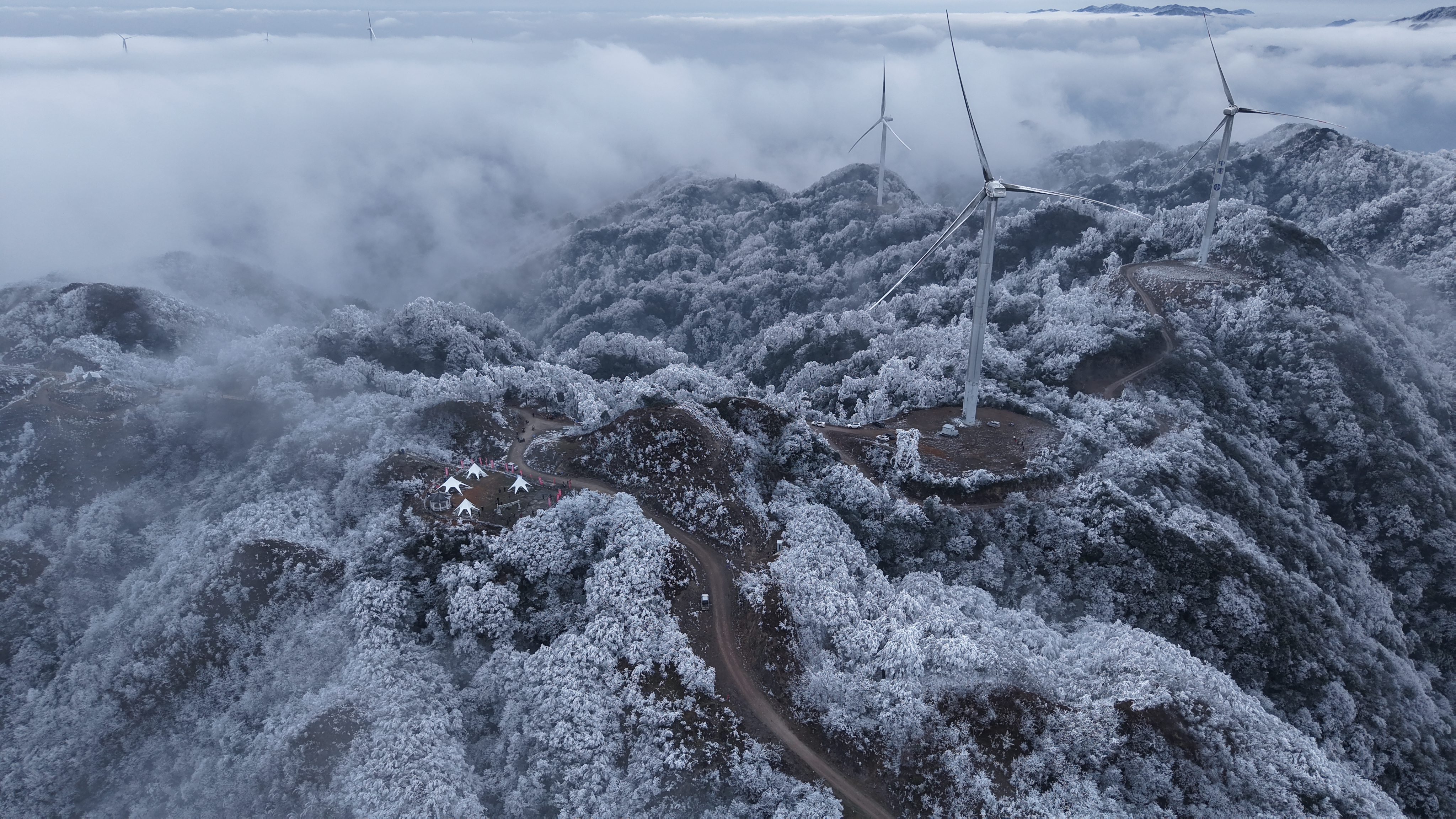 乌蒙山雾凇挂满枝头,阳光下银光闪闪。群山之巅、玉舍林间,千树万树凝霜挂雪,银装素裹的枝丫缀满冰晶,晨光一照,碎钻般的银光漫山遍野,风一吹簌簌飘落,南方独有的温柔雪韵,藏着最治愈的冬日浪漫。