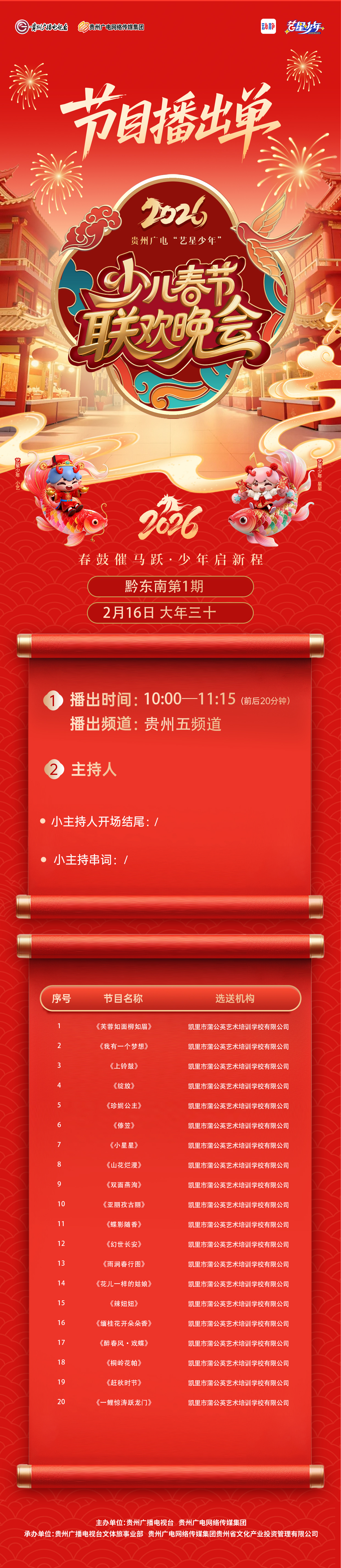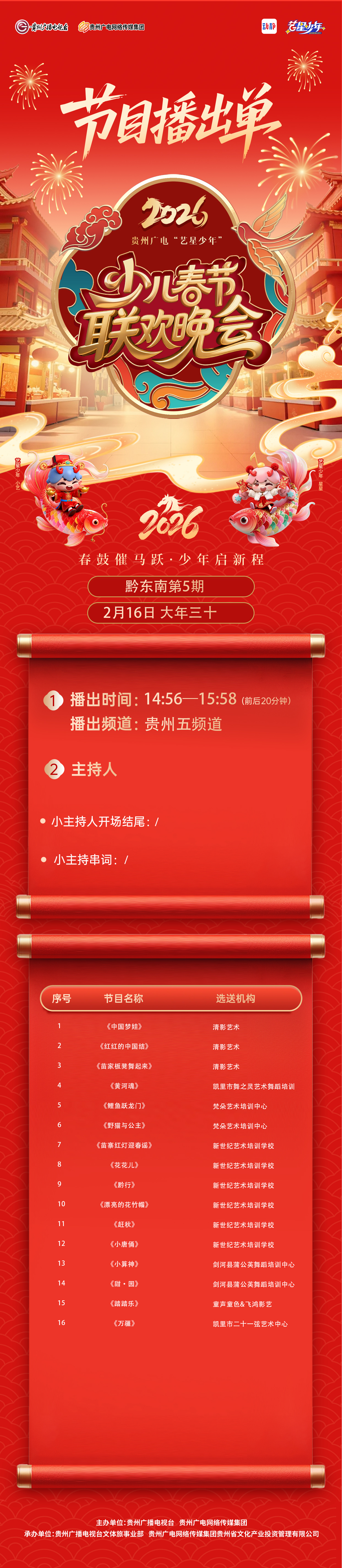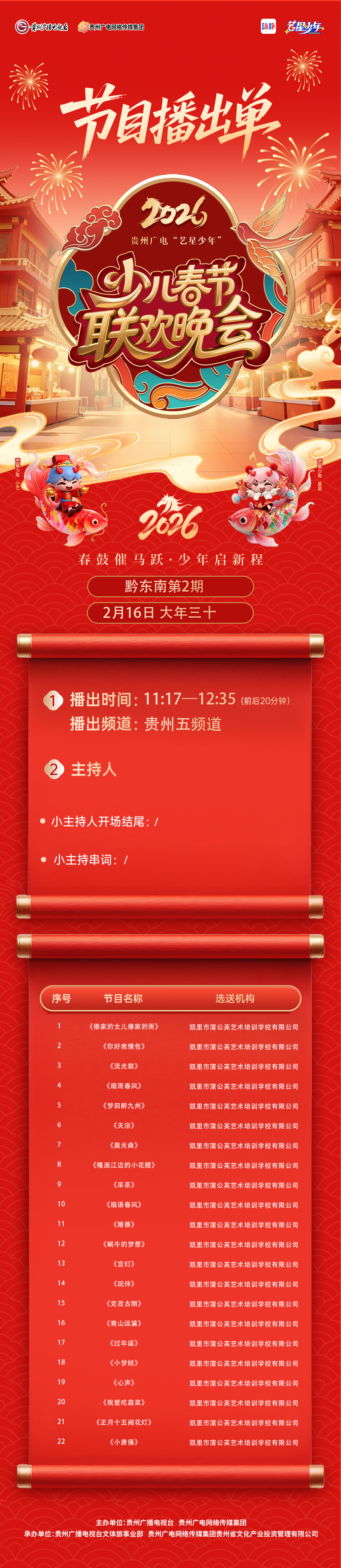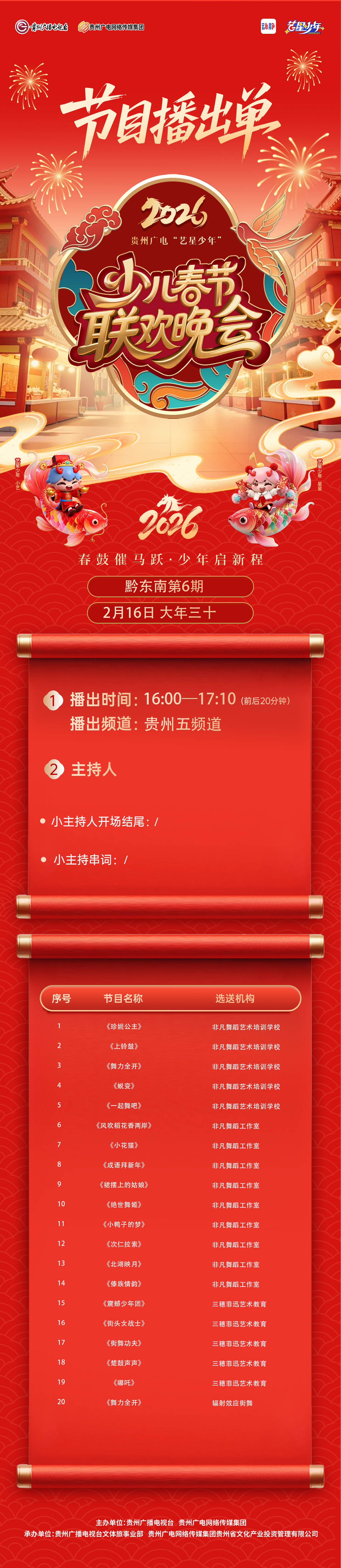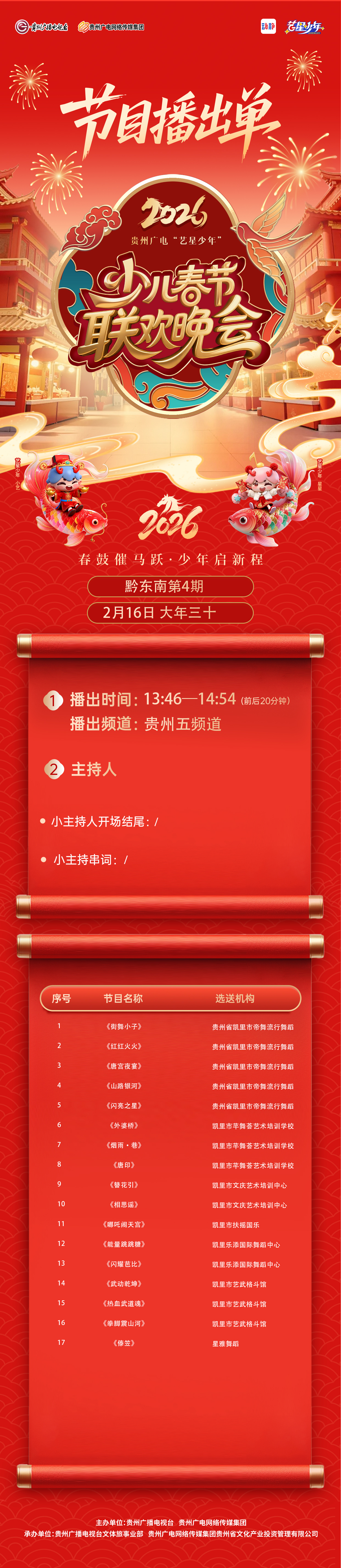 【黔东南播出通知】贵州广电2026“艺星少年”少儿春节大联欢活动——节目播出通知!!!