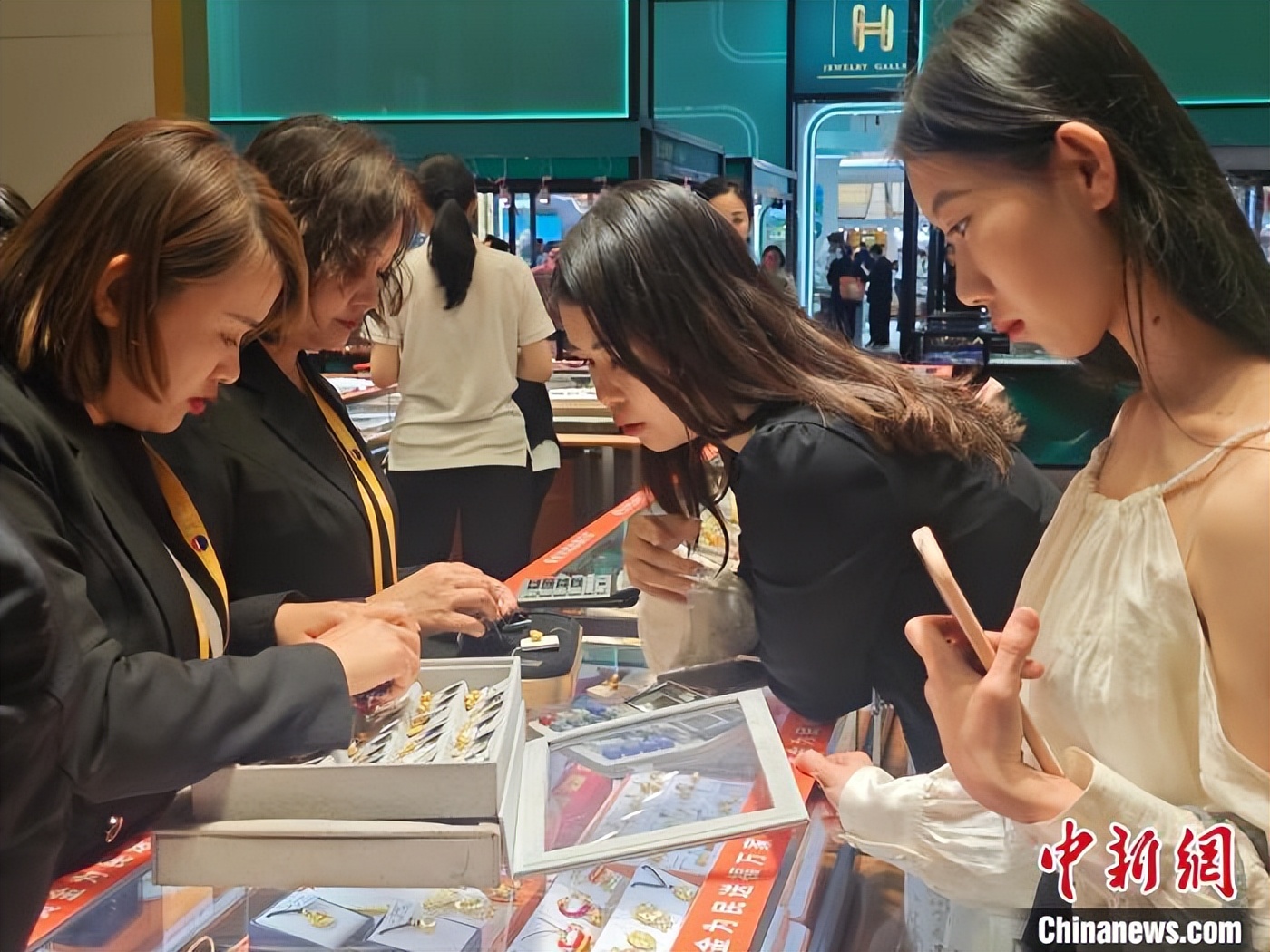 首次参展消博会的安徽汉秀珠宝有限公司创始人任越说,该公司依托传统文化进行创新设计的黄金珠宝产品颇受市场欢迎,“行情好的时候,线上、线下相结合,一天的销售额可达上千万元人民币。”