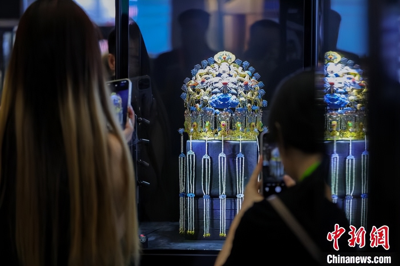 4月13日,海南海口,“非遗凤冠”亮相第五届中国国际消费品博览会,吸引参观者。 中新社记者 骆云飞 摄