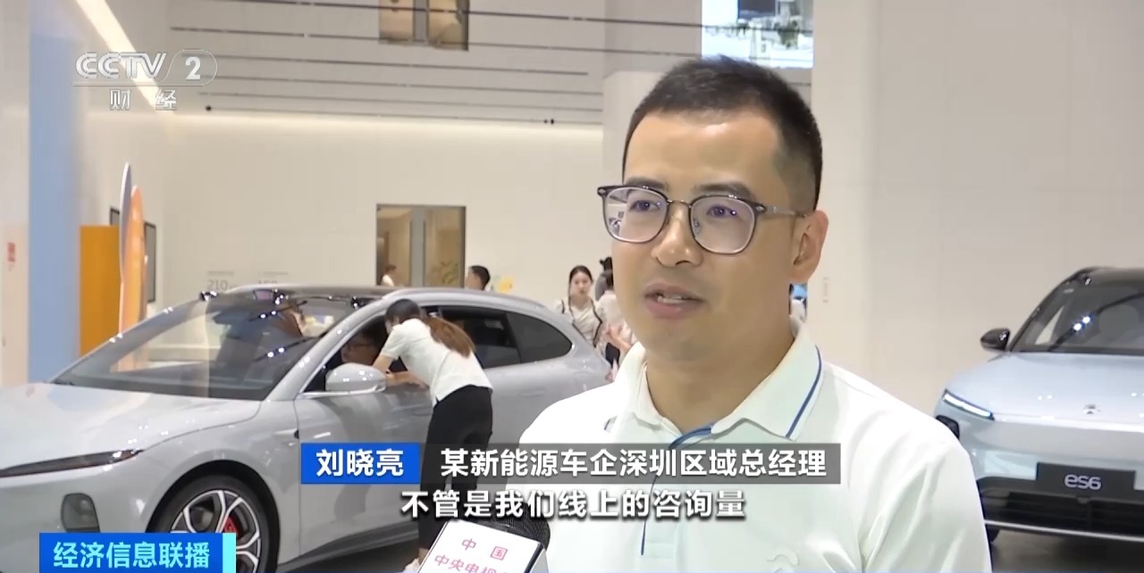某新能源车企深圳区域总经理 刘晓亮:不管是线上的咨询量,还是线下门店的人流量、试驾量都有非常明显的增加。