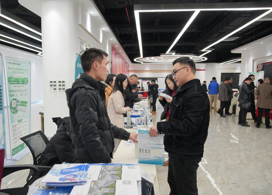 在产品展示交流大厅,23家企业的前沿技术和创新产品集中亮相,全景展现了科技驱动下的医疗器械行业创新浪潮,与会人员洽谈热烈、连连碰撞合作火花……