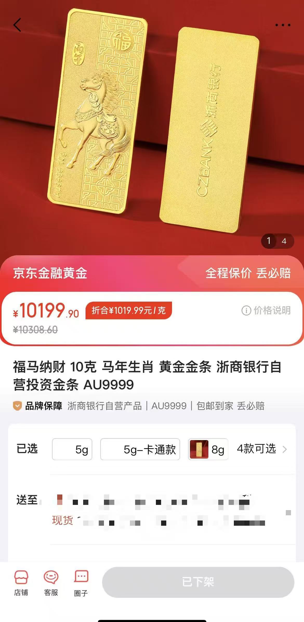 涨至万元以上!有平台下架10克金条