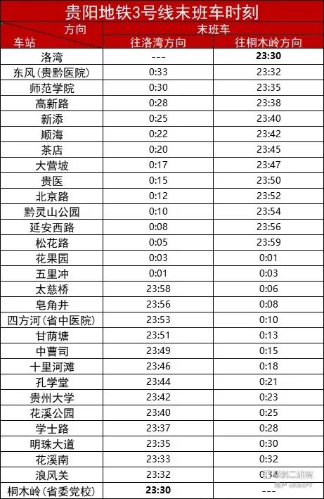 国庆假期将至,为方便广大市民出行,贵阳地铁全线网(1、2、3、S1线)自2025年9月30日至10月8日运营时间延长30分钟,各线路起点站末班车发车时间为23:30。