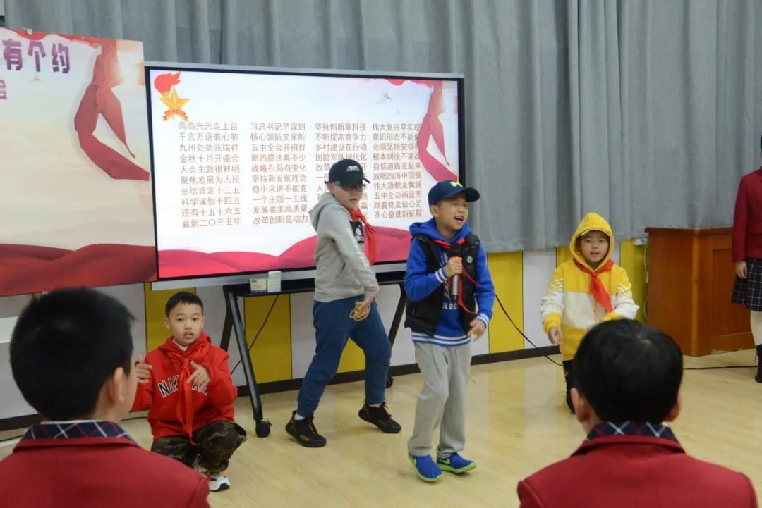 少先队员们将学习到的新思想给大家进行汇报分享,队员们还以Rap说唱展演的方式展示了他们学习后的收获和体会。