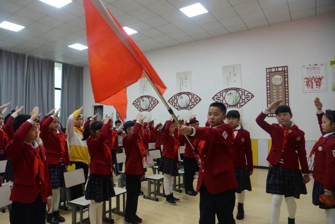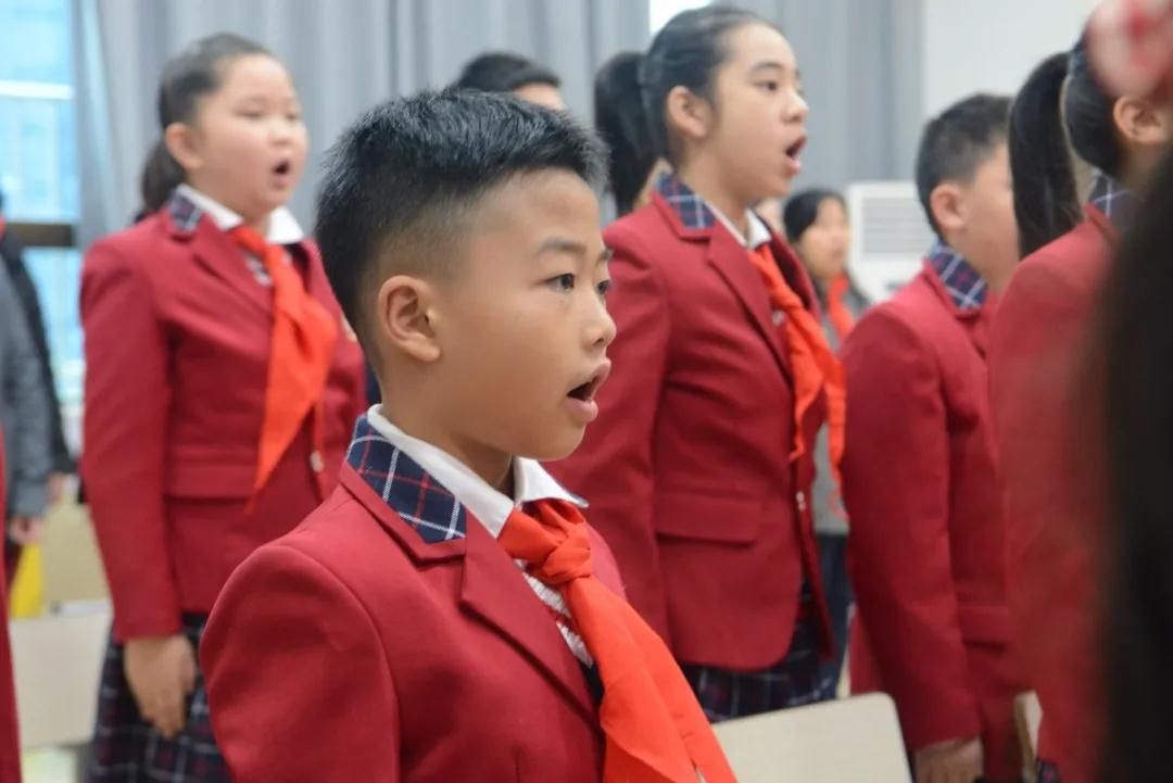 队员们齐诵《少年中国说》,表达了从小立下为建设祖国而努力学习的志向。
