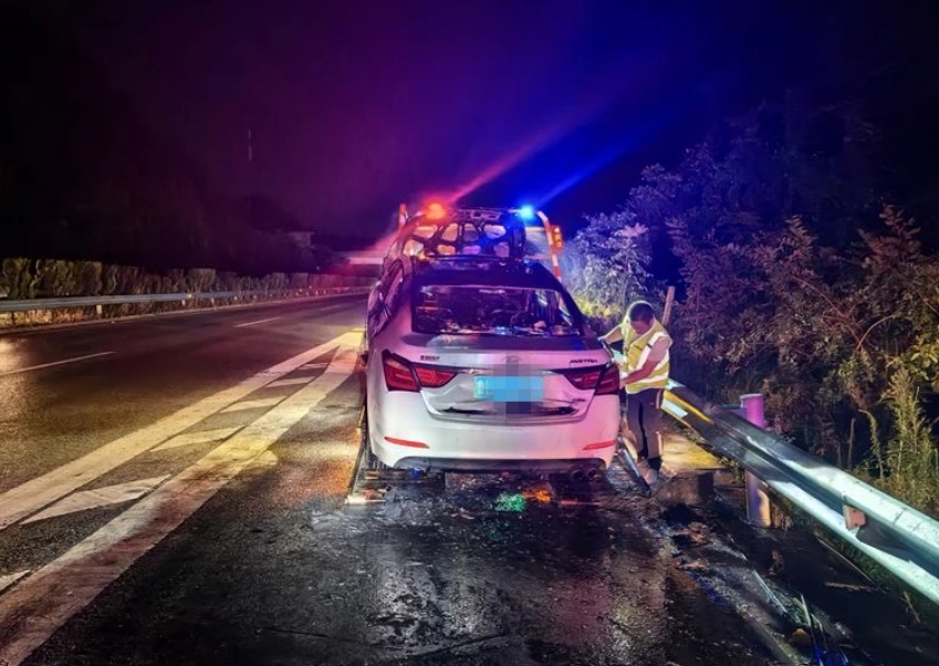 经多部门联合处置,火被扑灭,并将车辆拖离高速。