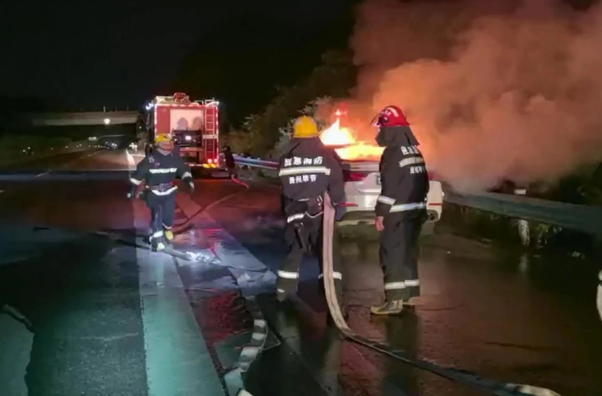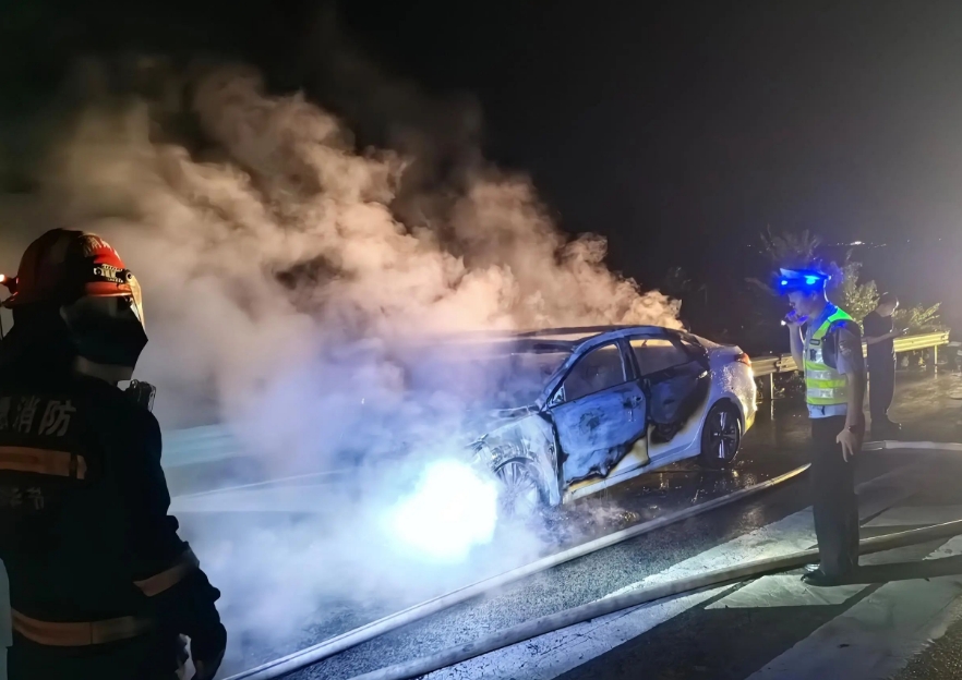 近日,毕节市公安交通管理局高速一大队四中队辖区发生一起小型轿车自燃事故,交警、消防、应急等多部门联合及时处置。