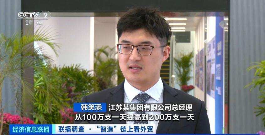 江苏某集团有限公司总经理 韩笑添:产能提高了一倍,从100万支一天提高到200万支一天。用工数量减少,让我们产品的综合成本(也)下降。