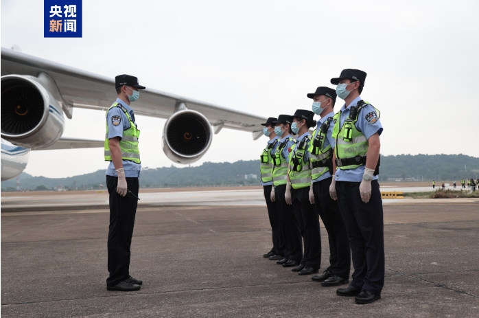 随着飞机发动机轰鸣声越来越近,安-124运输机顺利落地。珠海边检总站斗门边检站安排移民管理警察登机实施边防检查。在航展临时口岸,移民管理警察为29名机组人员顺利办理了边检入境手续。