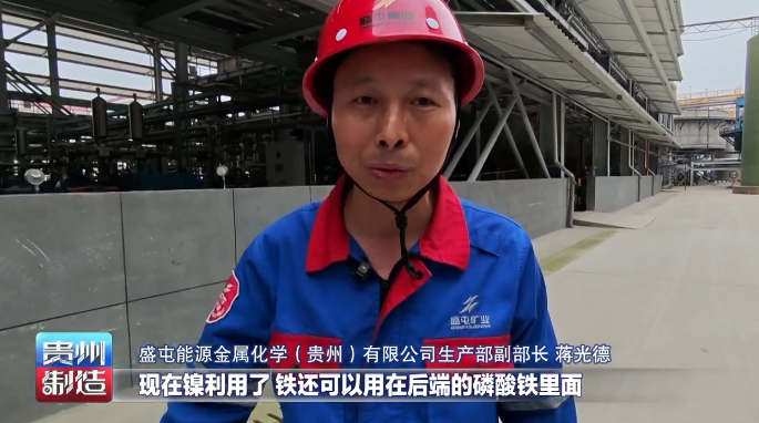 盛屯能源金属化学(贵州)有限公司生产部副部长蒋光德介绍,镍矿石富矿含量也就百分之十几,含铁量的话在要达到百分之三四十,剩下一部分硫,以前的铁都形成高温炉渣,还有很大部分都是作为尾矿堆积,现在镍利用了, 铁还可以用在后端的磷酸铁里面,硫也是拿去生产硫酸,一块矿石所有的元素都发挥它的最大价值。