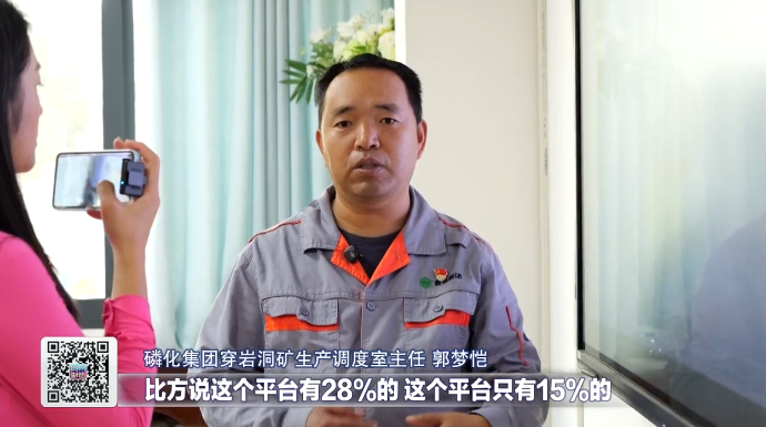 磷化集团穿岩洞矿生产调度室主任郭梦恺说,成矿带不是均匀分布的,三维模型实现了指哪儿打哪儿,比方说这个平台有28%的,这个平台只有15%的,综合搭配来用,不会说低品位的用不了,以前像他们堆存二三十吨低品位矿,价值一个多亿元,已经用上了,不再堆存了。