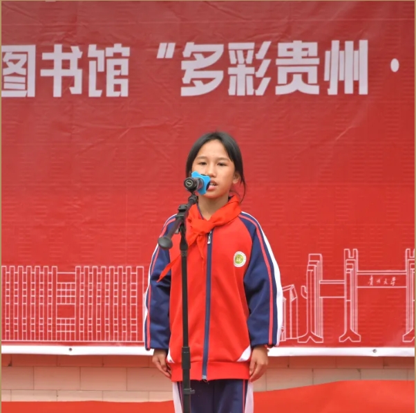 贵州大学图书馆志愿者上台分享了红色文化小故事,一起开展师生共读活动《我有祖国,我有母语》。