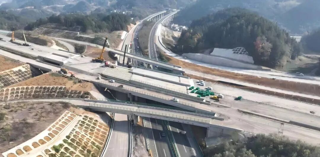 乌长高速汪家寨枢纽互通主线桥施工现场