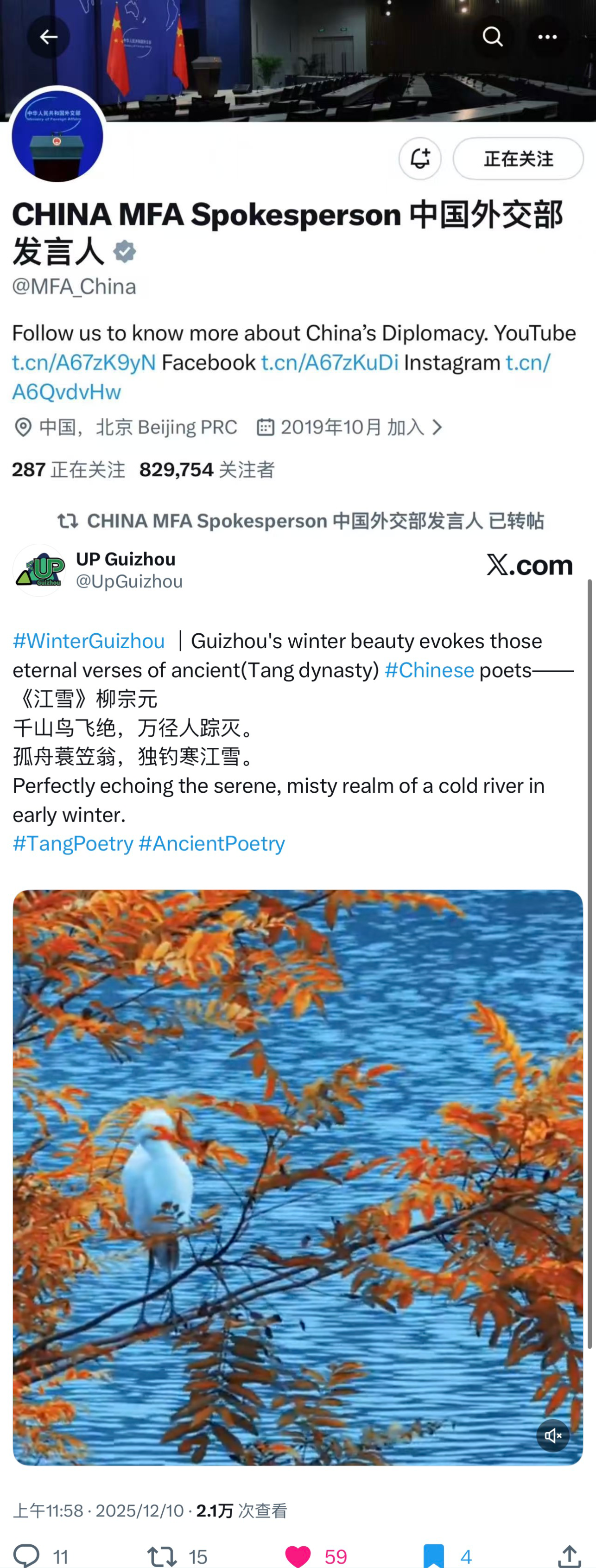 贵州的冬日超越了语言的隔阂。在这里,不需要翻译,就能读懂中国古诗的宁静与壮美。
