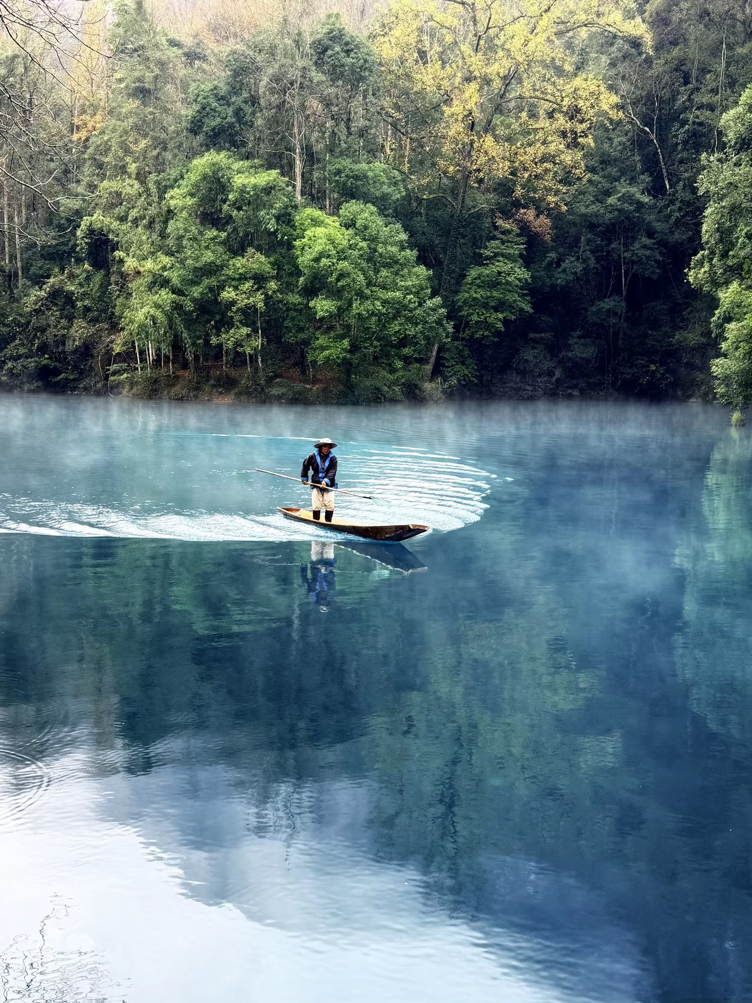 荔波小七孔的朦胧山水,则晕染出王维“江流天地外,山色有无中。”的水墨意境。
