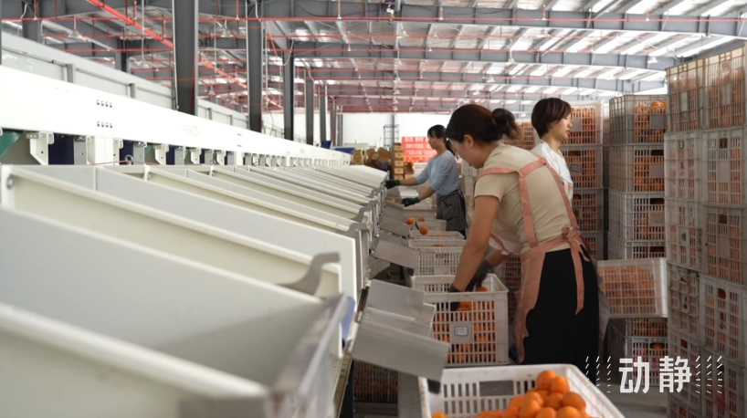 走进六枝水果分拣云仓,橙黄的茂谷柑在自动化传送带上翻滚流动,工人们正按照严格的品控标准进行分拣。他们动作娴熟地将果实按大小分级,剔除瑕疵果后装框。