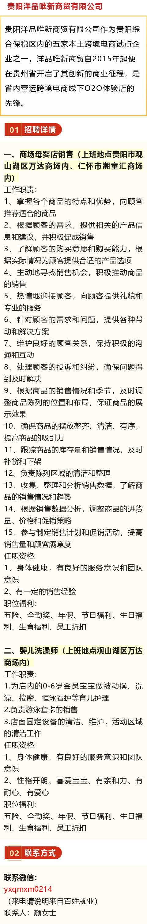 【贵阳综合保税区本土跨境电商试点企业】贵阳洋品唯新商贸有限公司招聘!