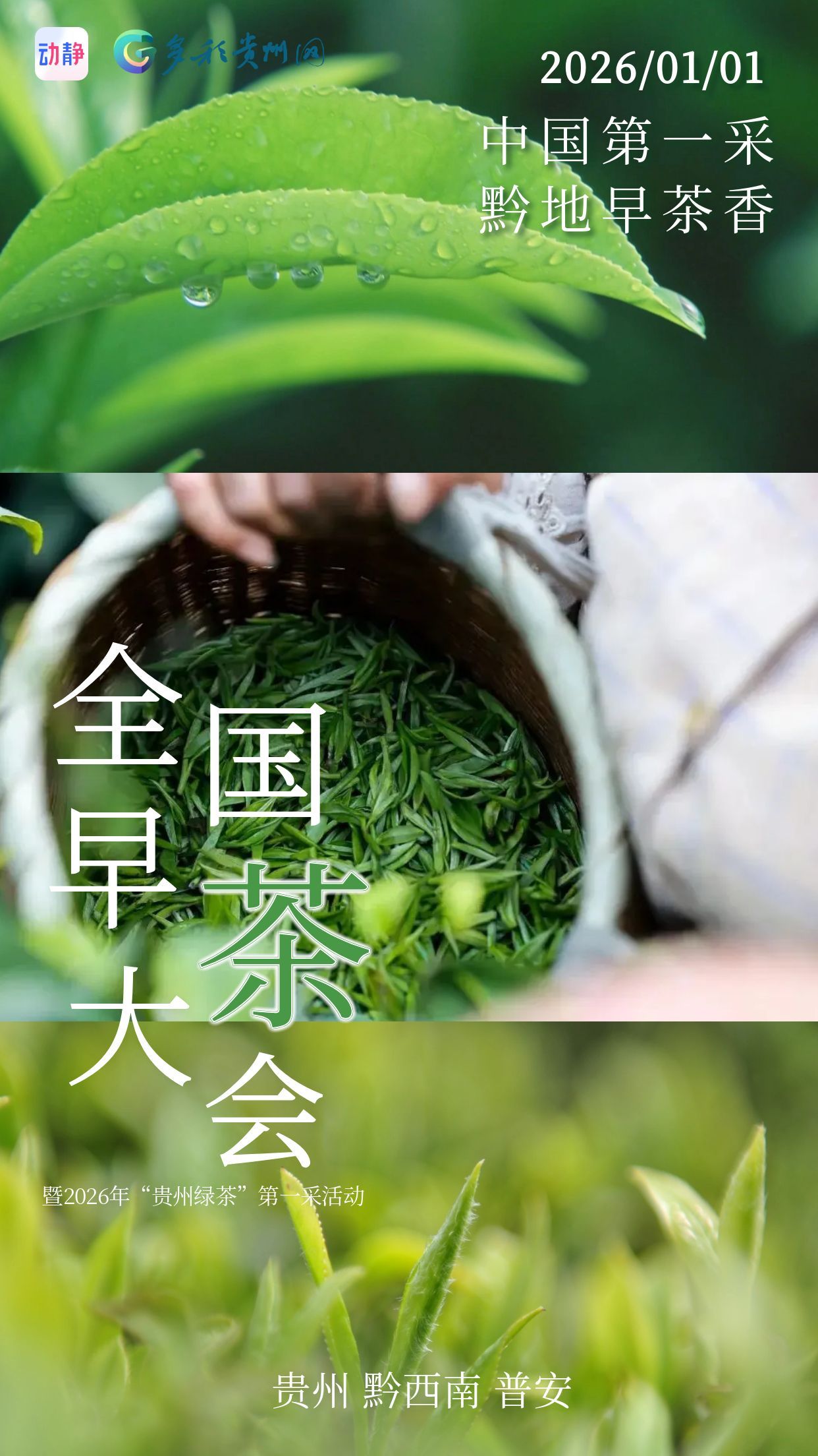 12月28日,动静记者从贵州省茶叶协会获悉,全国早茶大会暨2026年“贵州绿茶”第一采活动将于2026年1月1日在黔西南州普安县茶源街道茶神谷正式启幕,同步在黔西南州安龙县、铜仁市石阡县设立分会场开展开采活动。这场以“中国第一采 黔地早茶香”为主题的茶事盛会,将拉开全国春茶市场的序幕,让“干净黔茶”的馥郁香气跨越山海,展示贵州早茶优质品牌形象,促进茶企增效、茶农增收,助力乡村振兴。