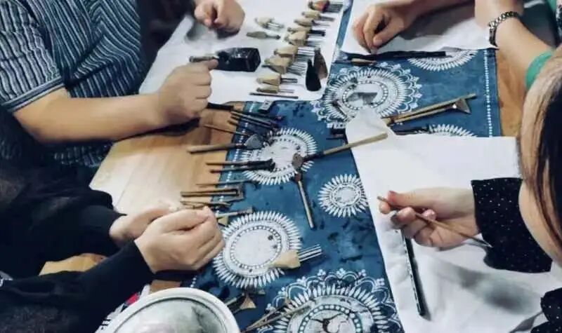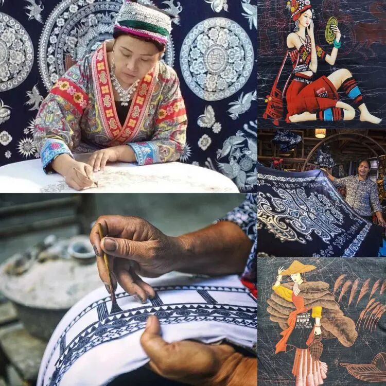 蜡染,是我国民间传统纺织印染手工艺,古称蜡缬,与绞缬(扎染)、灰缬(镂空印花)、夹缬(夹染)并称为我国古代四大印花技艺。